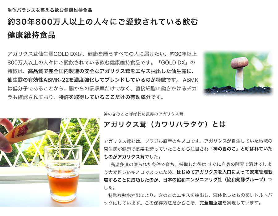 商品名 アガリクス茸 仙⽣露GOLD DX 30